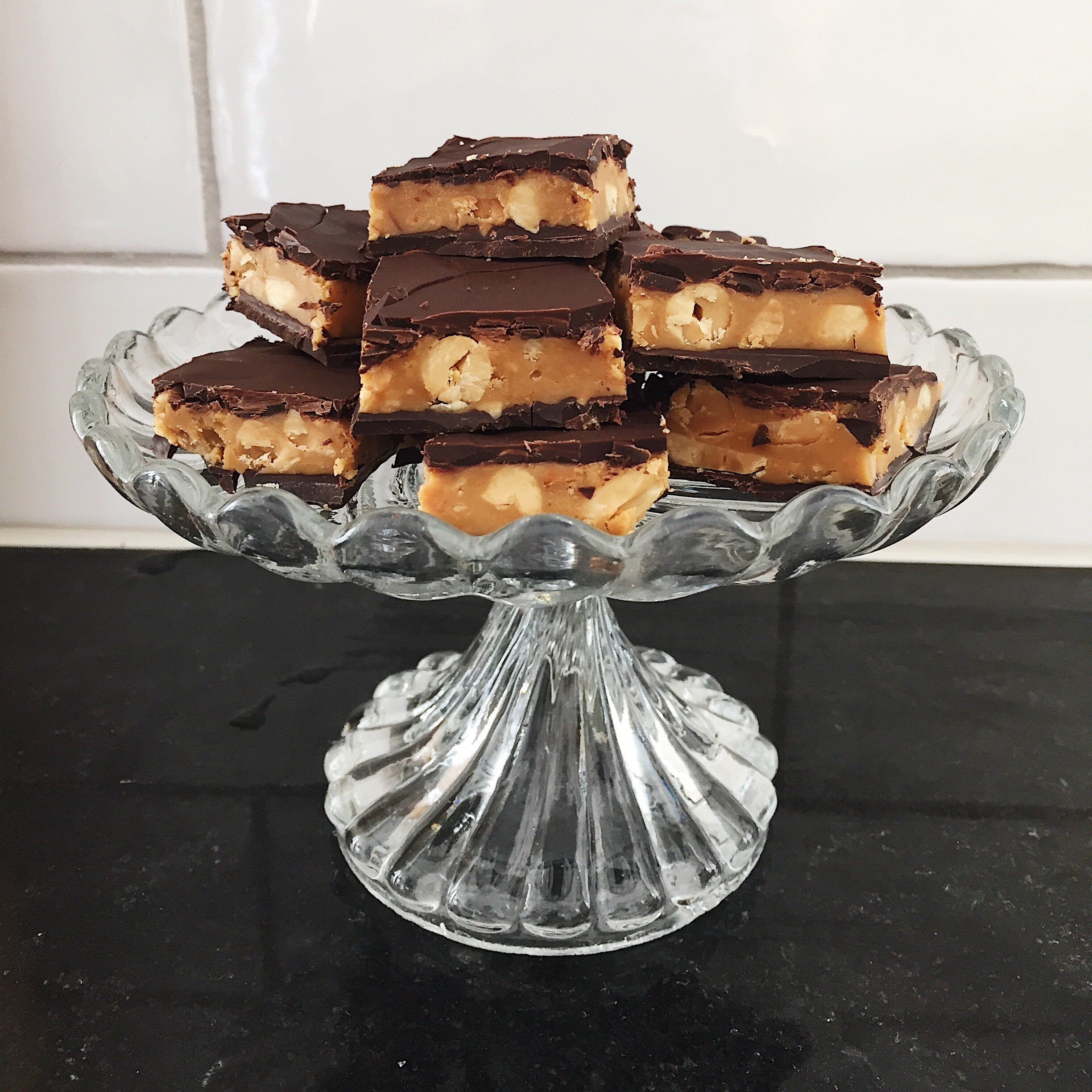 Min bricka är liten (26x25cm) så 80g blir bra, annars blir choklad lagret för tjockt.